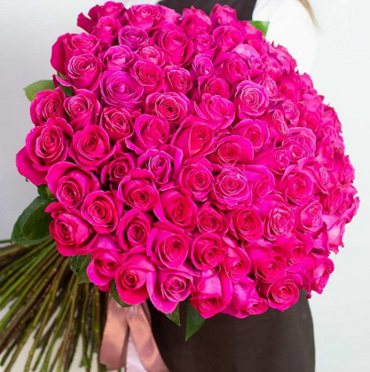 На фото букет из 101 розы Pink Floyd, высотой 60см. Растовку розы можно поменять с помощью онлайн калькулятора в букете.