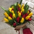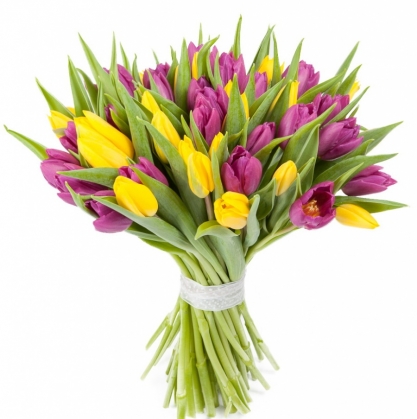 Этот букет произведёт на получателя неимоверное впечатление, изобилующее красотой и элегантностью. Желтые тюльпаны прекрасно смотрятся рядом с фиолетовыми, выглядят как загадочные и драгоценные сокровища. Сиреневые тюльпаны придают букету чувство роскоши и безупречности. Вместе они образуют идеальную композицию, приносящую в Ваш дом радость и прекрасное настроение.