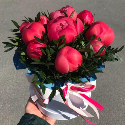 Коробка пионов Coral Charm. Можно выбрать любое количество и размер коробки.