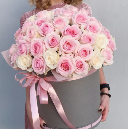 Коробка с розовыми и белыми розами | Купить в Серпухове