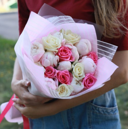 Букет розовые розы и пионы | Купить в Серпухове