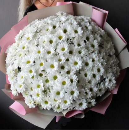 Огромный букет из 31 хризантемы в упаковке. Количество цветов в букете можно изменить.