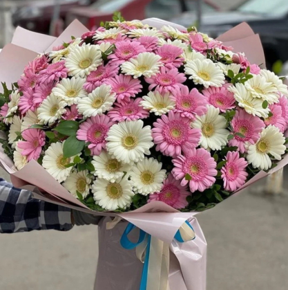 Букет из 101 белой и розовой герберой | Купить в Серпухове