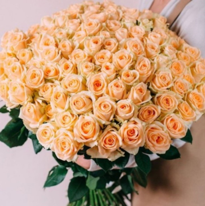 Кремовые розы Пич Аваланч под ленту. С помощью онлайн калькулятора можно выбрать любое количество цветов.