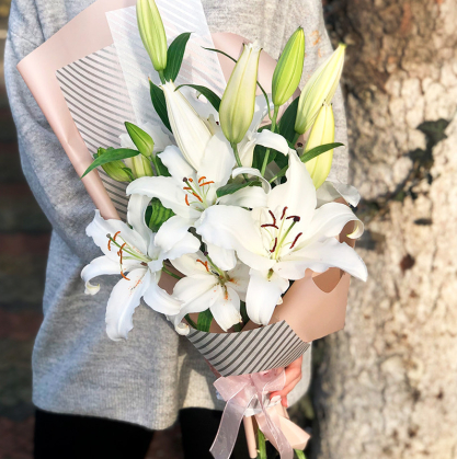 Ароматные голландские лилии. За счет того, что бутоны распущенны - букет не смотрится маленьким.