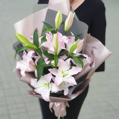 Букет из 5 розовых лилий | Купить в Серпухове