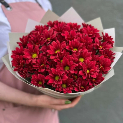 Букет из 9 бордовых кустовых хризантем | Купить в Серпухове