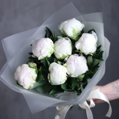 Букет из белых пионов в стильной упаковке