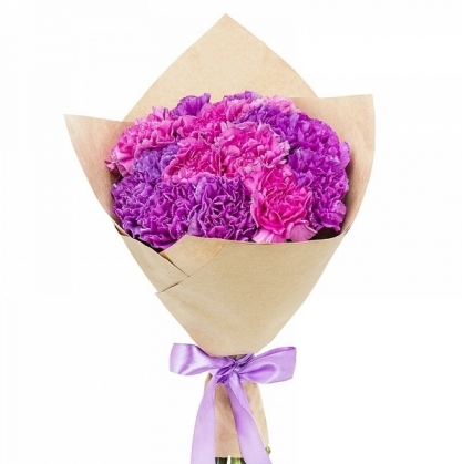 Букет из гвоздики в крафте. Используется два оттенка цветов.
