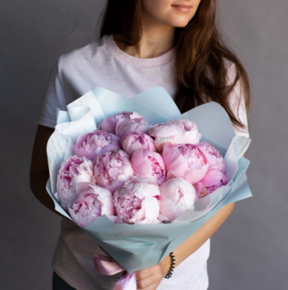 15 светло-розовых пионов Сара Бернар в упаковке с доставкой в Серпухове