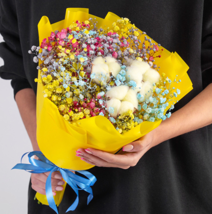 Букет из радужной гипсофилы и хлопка в Серпухове