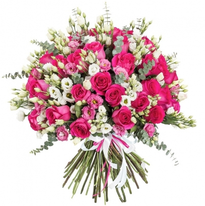 Купить букет роз, эустомы, эвкалипта с доставкой в Серпухове