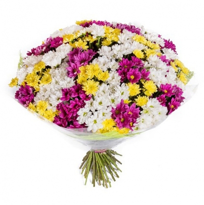 Очень большой букет из разноцветных хризантем приведет в восторг любого!