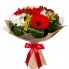 Яркий букет из гербер, альстромерий и кустовой хризантемы с добавлением зелени.