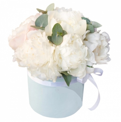 Купить белые пионы в шляпной коробке с доставкой в Серпухове