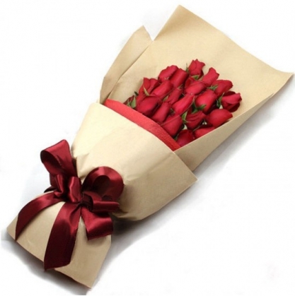 Букет из красных роз в крафт упаковке, собранный в стиле "лесенка".