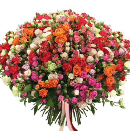 Букет из 101 кустовой розы разных цветов.