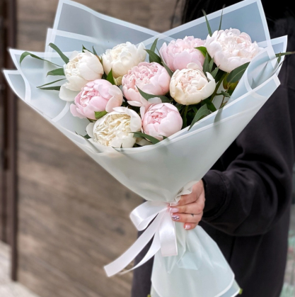 Букет 9 пионов в матовой пленке | Купить в Серпухове