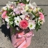 Очень нежная, сборная композиция цветов. Розовая орхидея добавляет красоты и свежести, розы - роскоши и любви, сантини - нежности и изящества, альстромерия - элегантности и стиля, а зелень добавляет жизненности и натуральности к букету. Шляпная коробка сделает букет еще более эксклюзивным и изысканным.