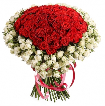 Большой букет из одиночных и кустовых роз на проволочном каркасе