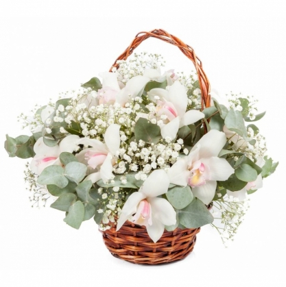 Корзина белых орхидей "Воздушный поцелуй" | Купить в Серпухове